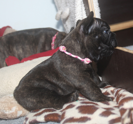 Helene schärft ihr Raubtiergebiss an der Wurfbox.